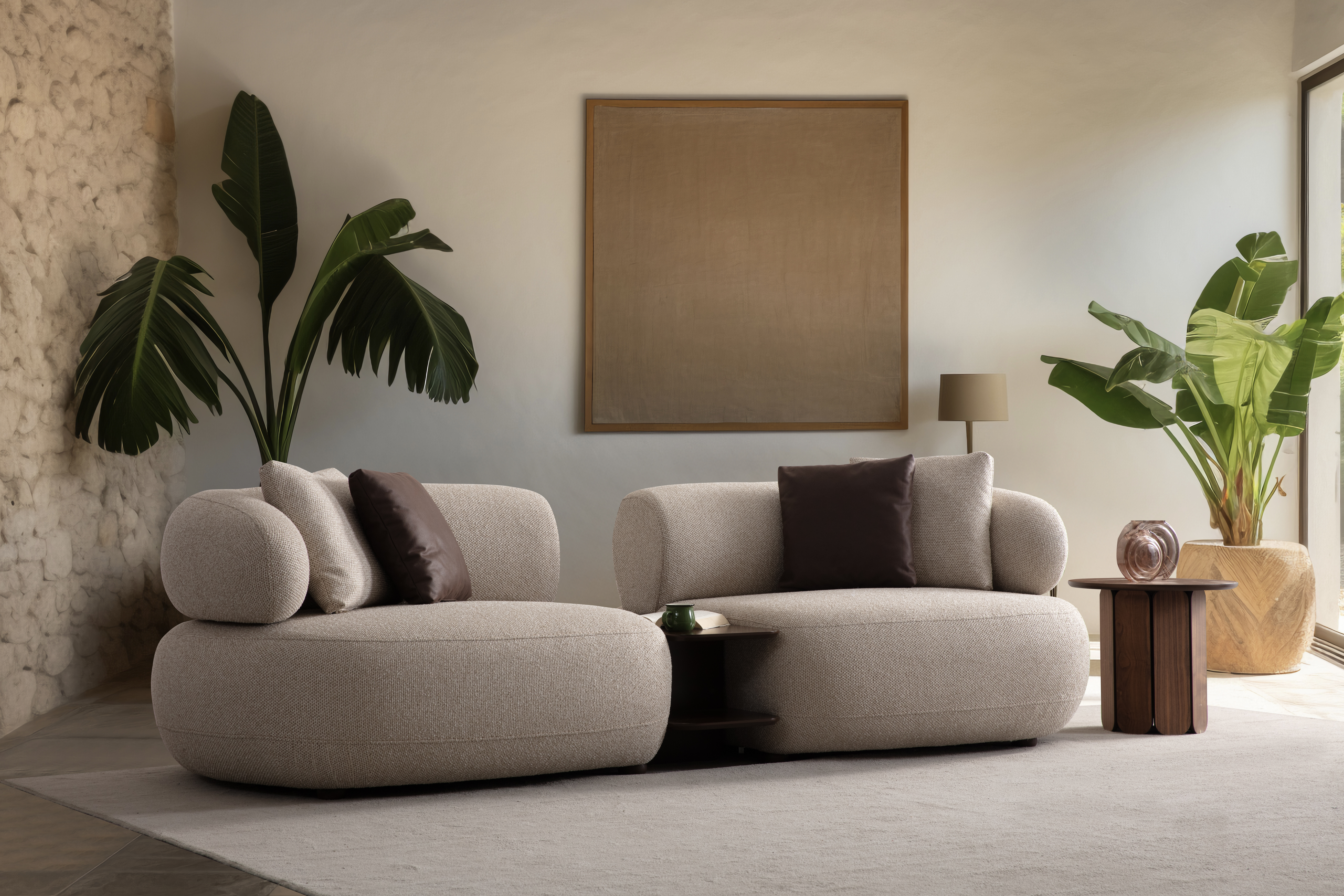 De Braga combineert een compact ontwerp met royale, volle kussens die zorgen voor een warme en eigentijdse uitstraling in zowel grote als kleine ruimtes. De zachte, organische belijning en luxe afwerking maken deze 3-zitsbank en fauteuil tot de ideale keuze voor een gebalanceerd en elegant interieur.
