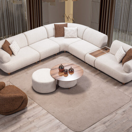 De Marsilya Hoekbank straalt elegantie en comfort uit met haar verfijnde design en hoogwaardige afwerking. Perfect voor wie een stijlvolle en comfortabele toevoeging zoekt voor de woonkamer.